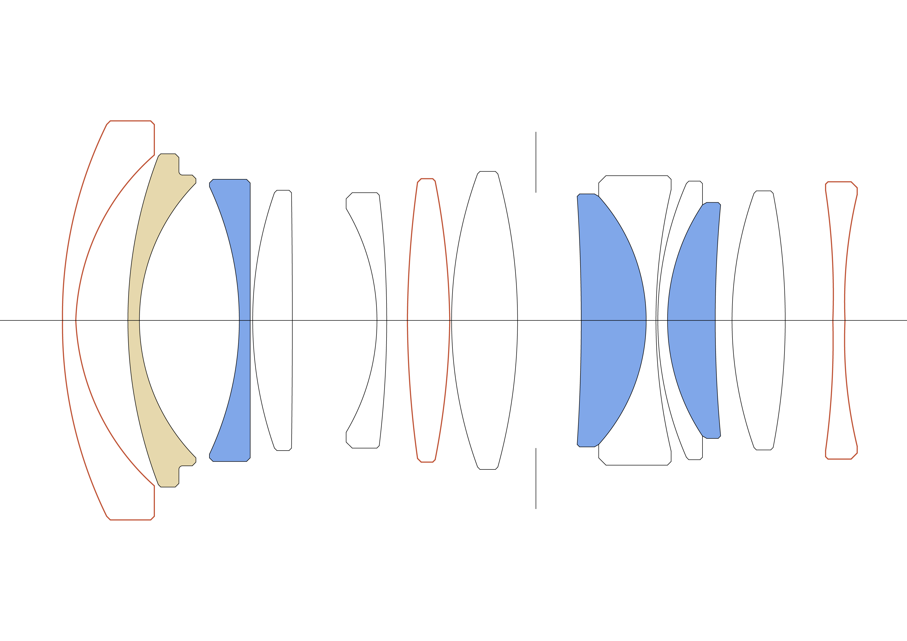 Design optic: 13 elemente in 11 grupuri (1 FLD, 3 SLD, 3 elemente asferice)