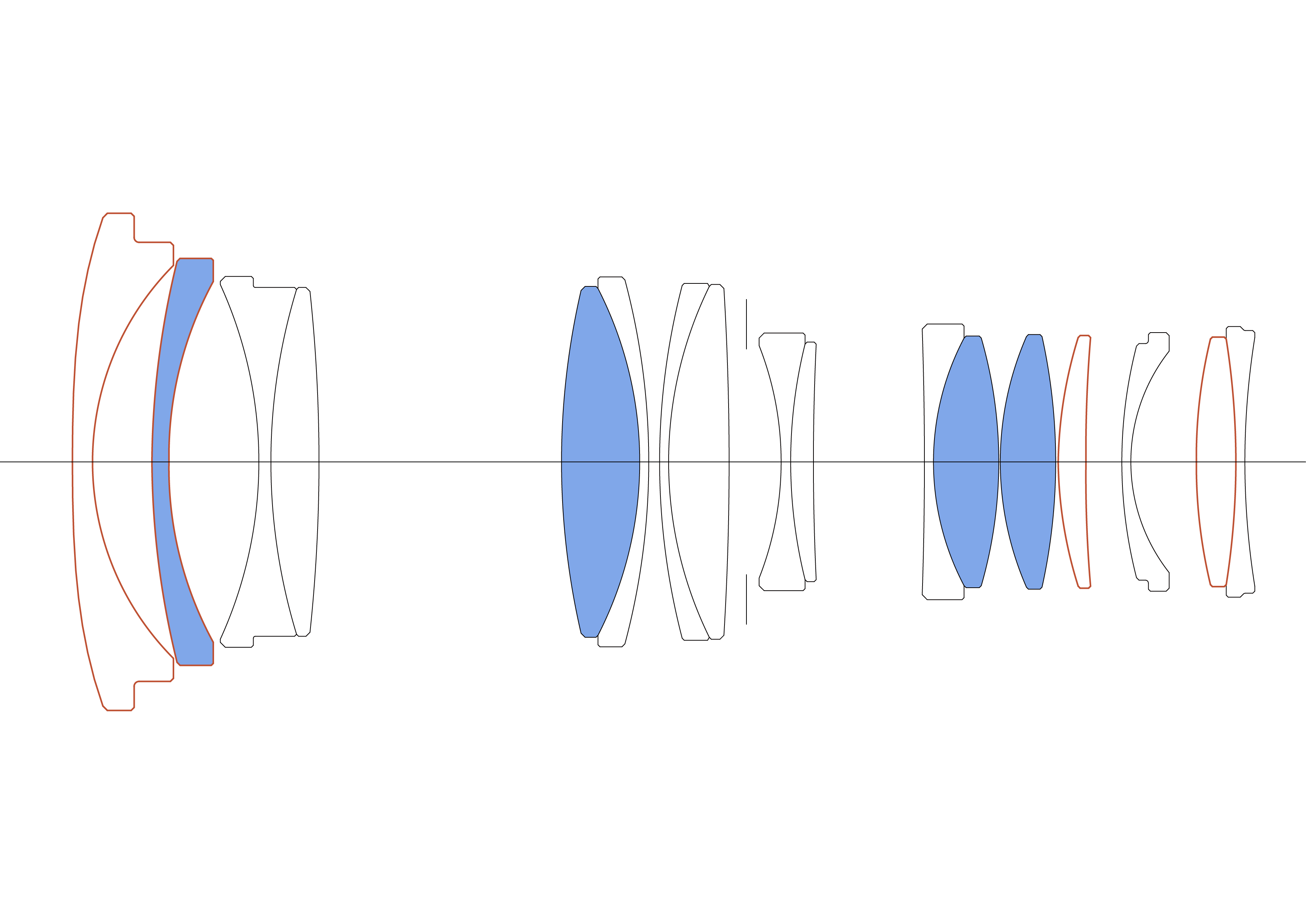 Design optic: 17 elemente în 11 grupuri (4 SLD, 4 elemente asferice)